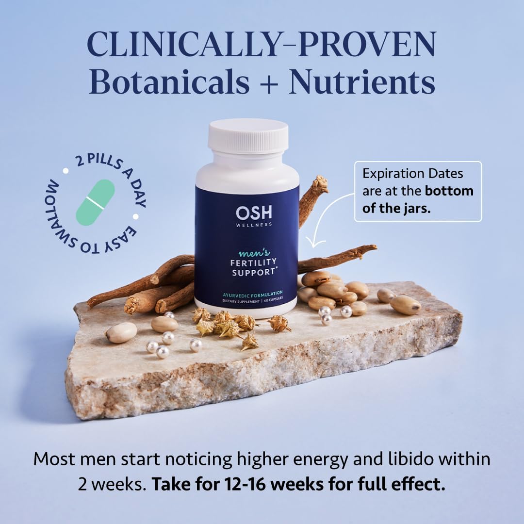 Ayurvedic Men’s Fertility Support – Optimal Sperm Health, Quality, Volume, & Motility – Male Fertility Supplements with Ashwagandha, Mucuna, Maca, Shatavari, CoQ10 & Zinc Vegan 60 Count – OSH Wellness