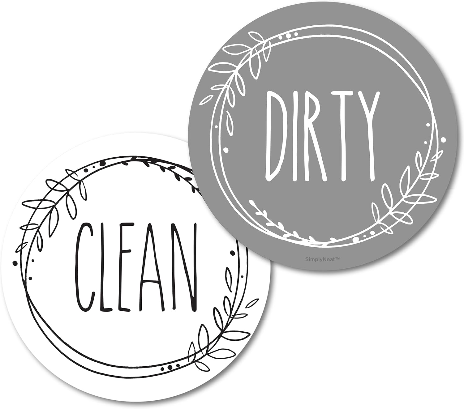Clear Clean/Dirty Indicator: Features “Clean” on a bright white background and “Dirty” on a distinct gray background for easy visual cues.
