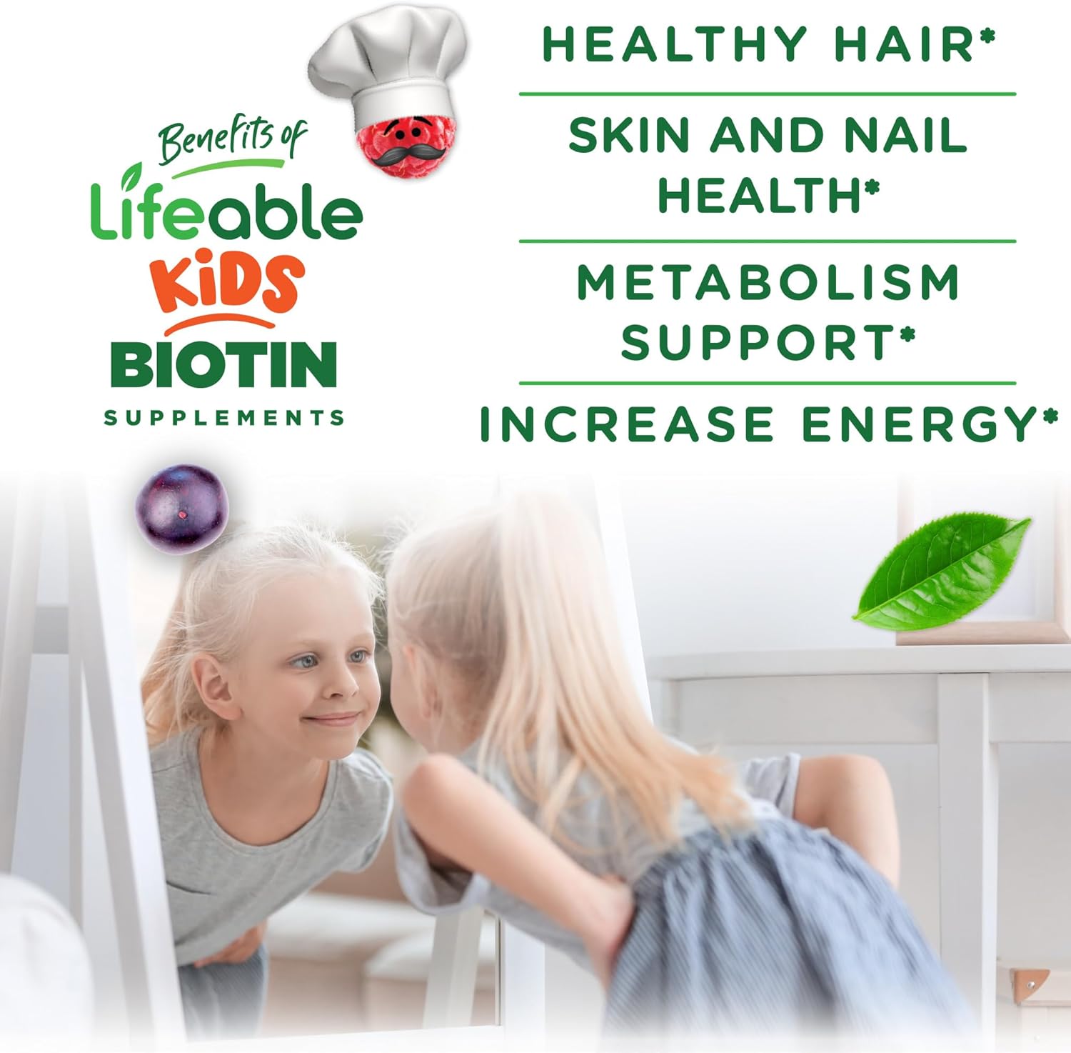 Lifeable Kids Biotin Gummies | 5,000mcg | Great Tasting Natural Flavor Biotin Supplement | Vegan Non GMO Hair Gummies | for Hair Skin and Nails | 90 Gummies