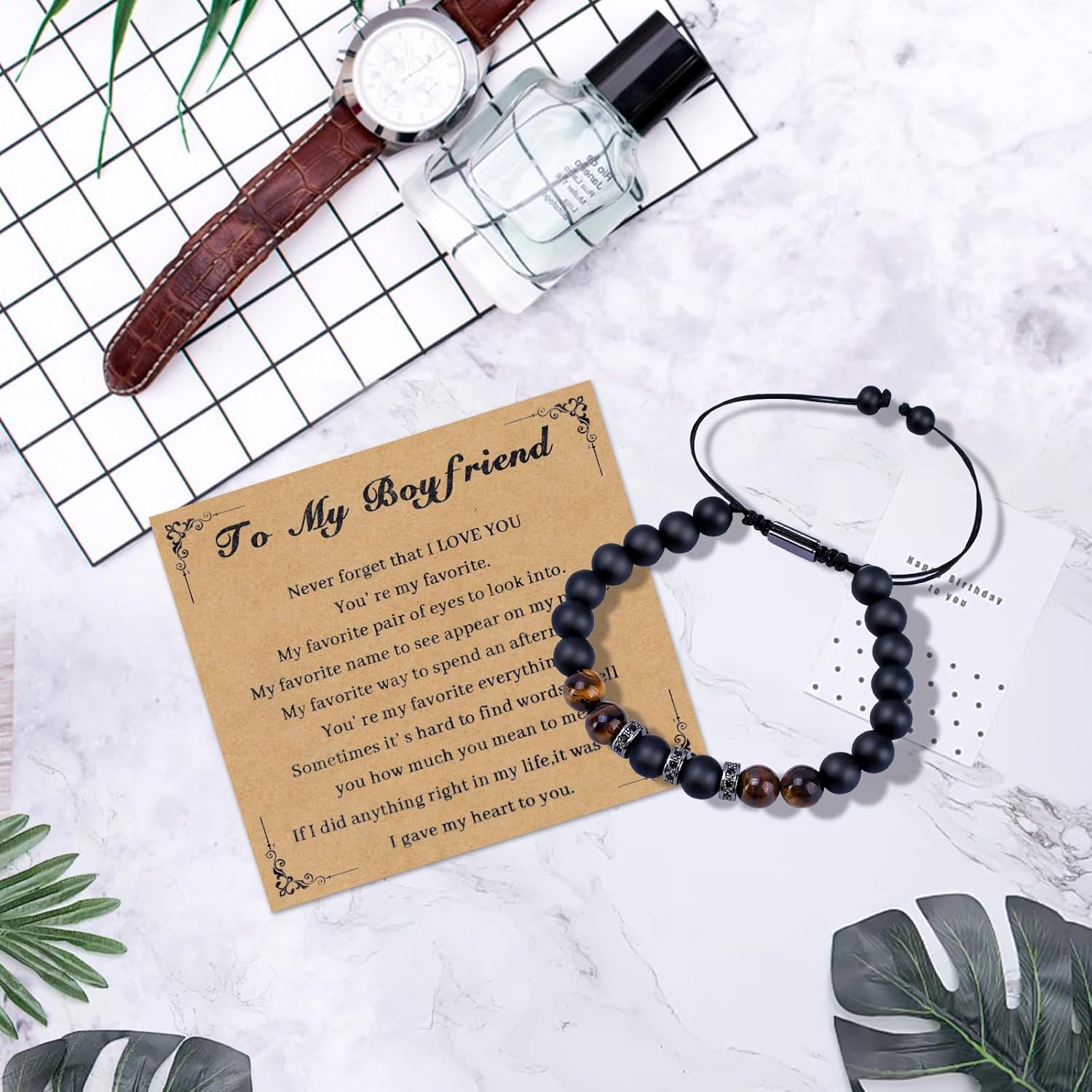 Men’s Natural Stone Bracelet for Him – Valentine’s Day Gift – Stainless Steel Chain Bracelet – 5.5-10 inches