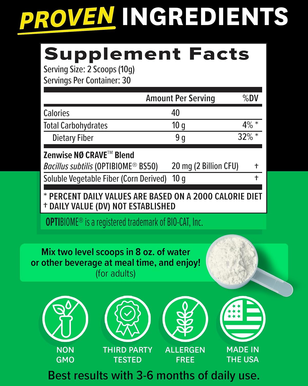 Clinically Studied NØ CRAVE Blend: Delays hunger and increases satiety, minimizes after-meal sugar spikes, stimulates appetite- regulating GLP-1 hormone, and supports gut health.